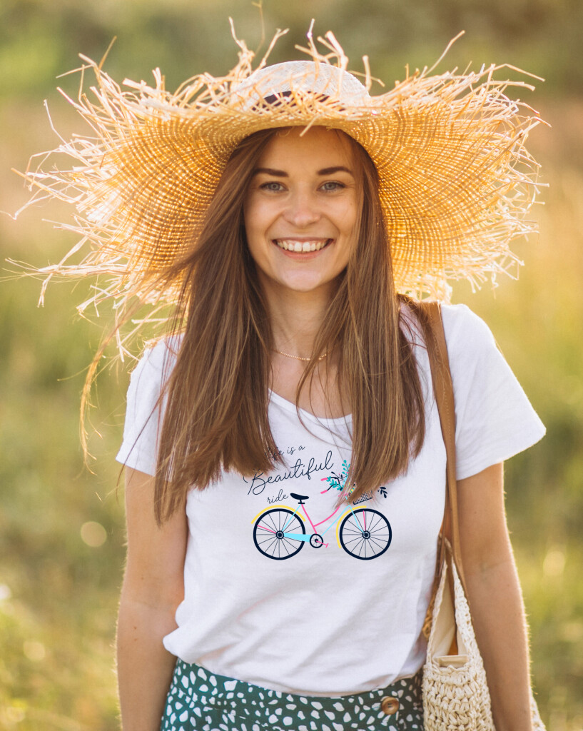 Camiseta cuello redondo, en canalé con elastano. Tira cubrecosturas a tono en el cuello. Acabado de doble pespunte en el bajo de mangas y de la prenda.