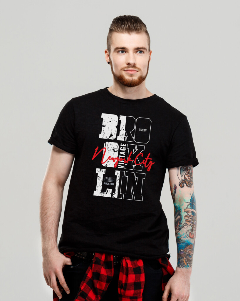 Camiseta de manga corta. Cuello redondo de 4 capas en canalé 1×1 con cubrecosturas de hombro a hombro. Costuras laterales.