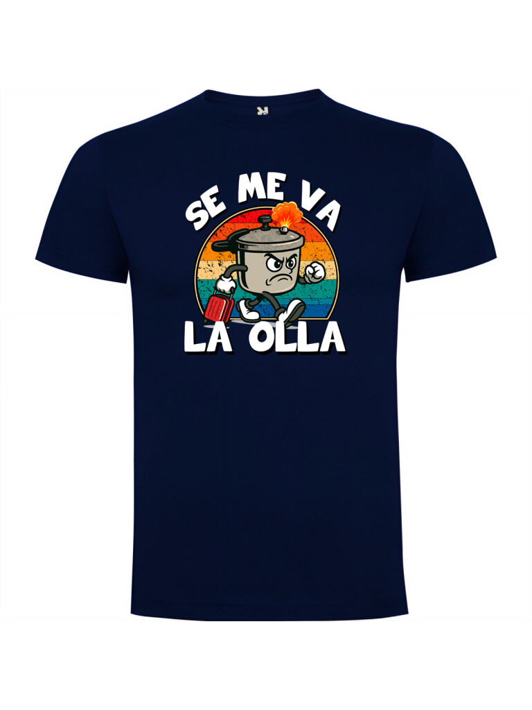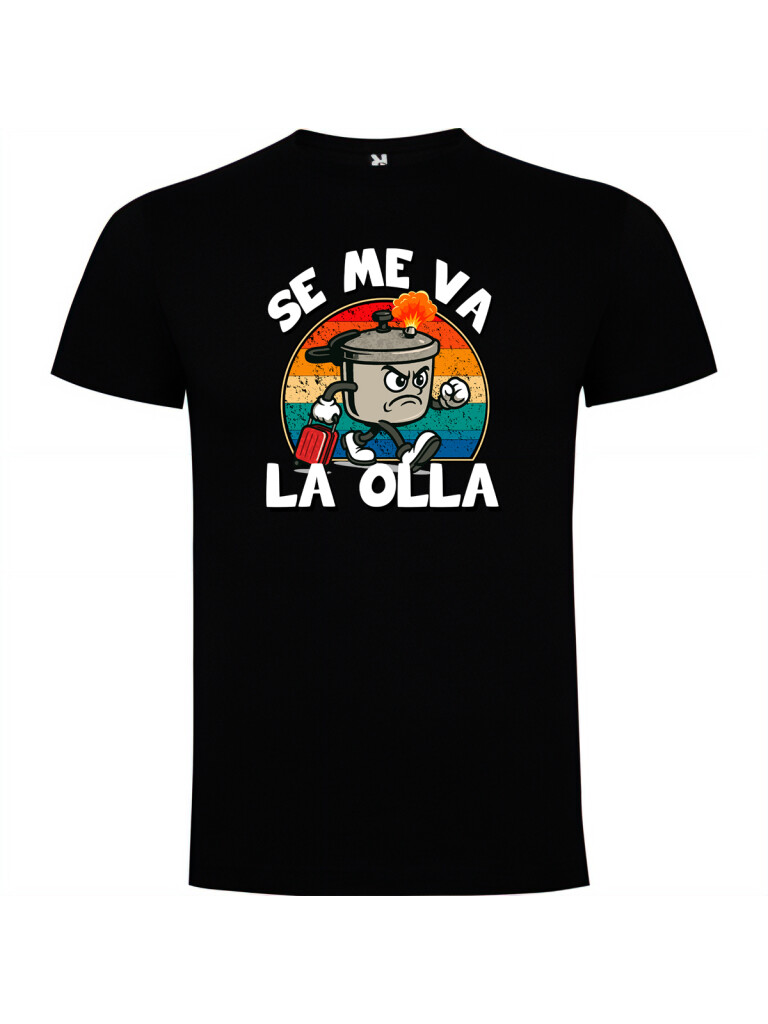 - Diseño: Estampado Funny "Se Me Va la Olla" con ilustración de olla de presión retro y texto descriptivo.