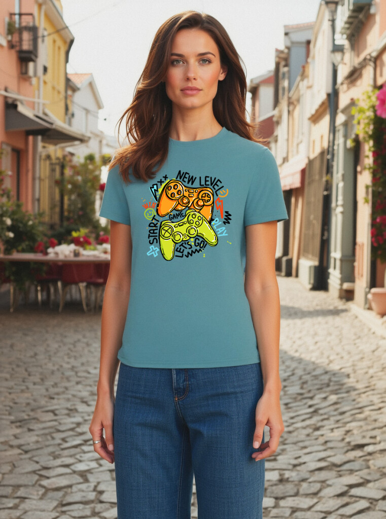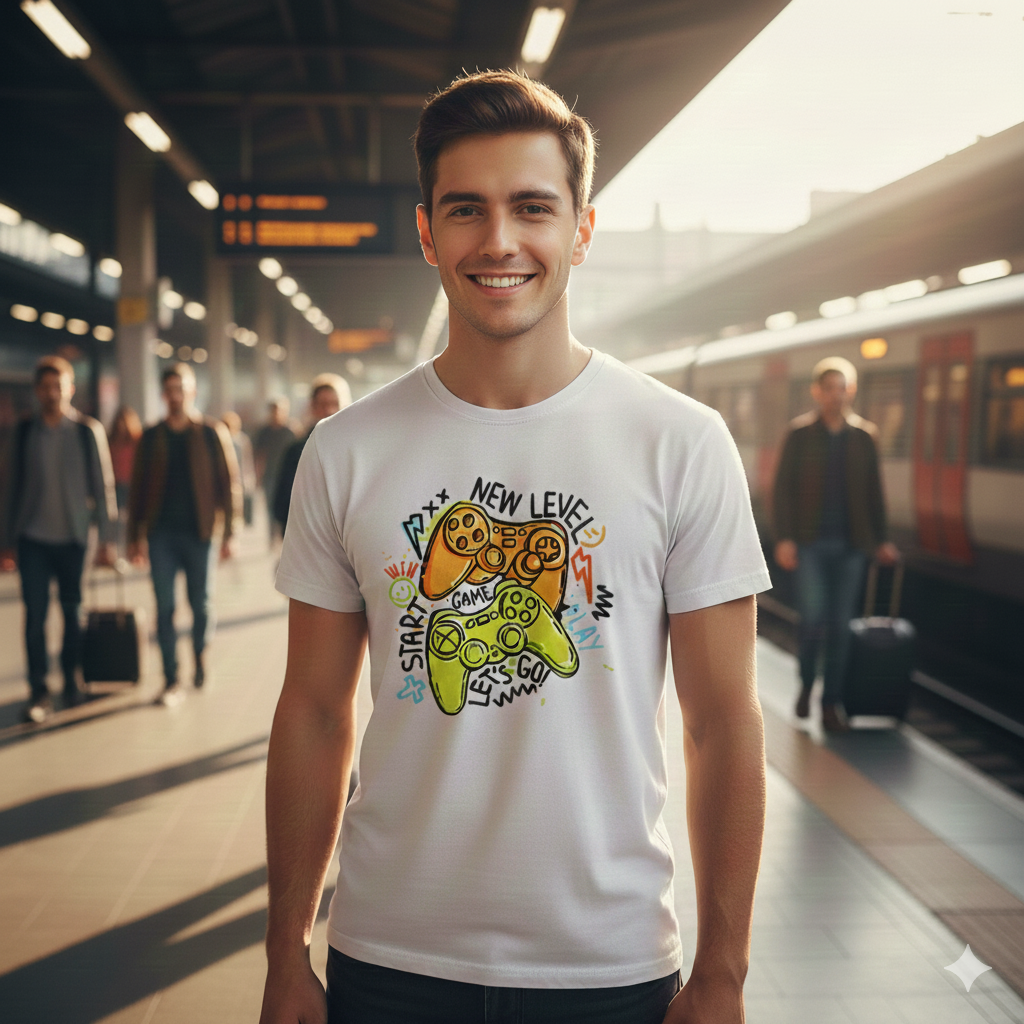 Camiseta de algodón 100% para Gamers: diseño "New Level" y el máximo confort para tu próxima partida.