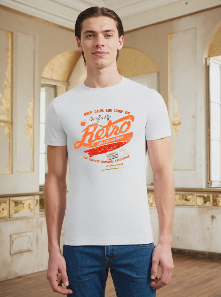 ¡No dejes escapar esta ola de estilo! Añade la Camiseta Retro «Surf» a tu carrito y lleva el verano infinito contigo. ¡Es hora de surfear la vida!
