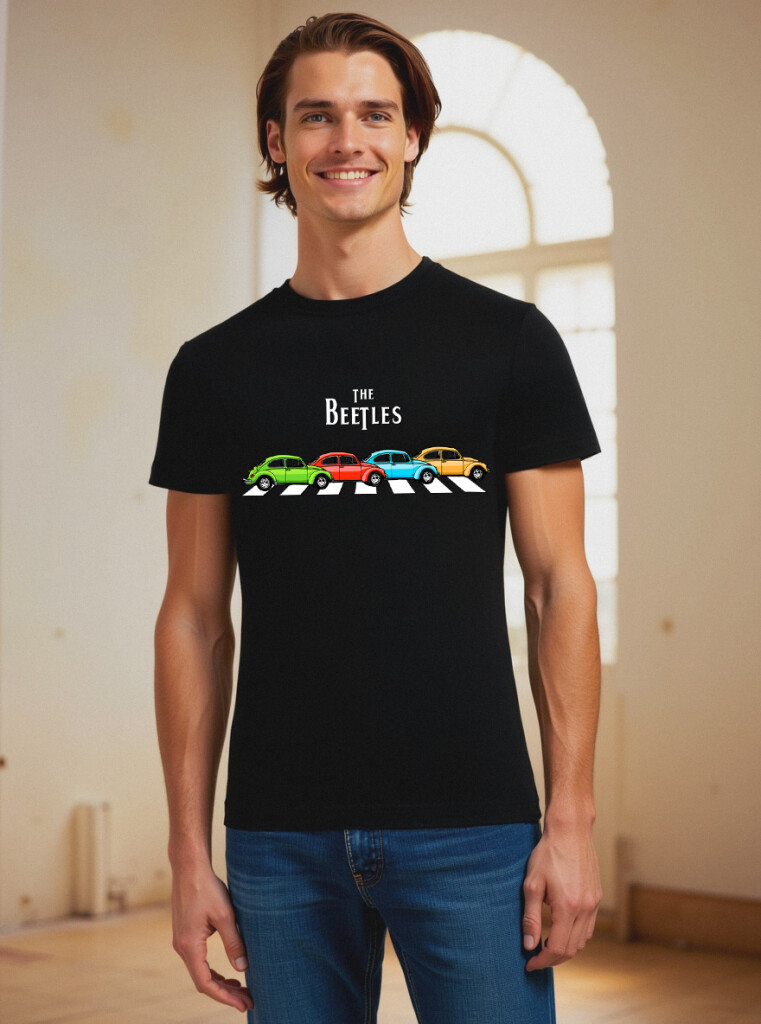 ¿Quién dijo que los clásicos no pueden reinventarse? Olvídate de los cuatro de Liverpool por un momento y saluda a la ingeniería alemana más simpática de la historia. En esta ilustración, el paso de cebra más famoso del mundo no lo cruzan músicos, sino cuatro coloridos «escarabajos» en perfecta formación. Es el mashup definitivo para los que tienen gasolina en las venas y rock and roll en el corazón. Una prenda pensada para arrancar sonrisas y conversaciones allá donde vayas, demostrando que tu estilo tiene personalidad y mucho sentido del humor.