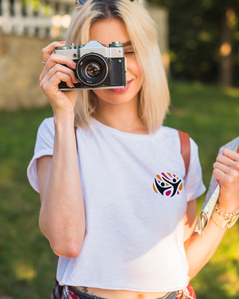 Camiseta de talle corto y holgado con manga corta. Cuello redondo con ribete ancho de canalé 1×1. Cubrecosturas reforzado a tono.